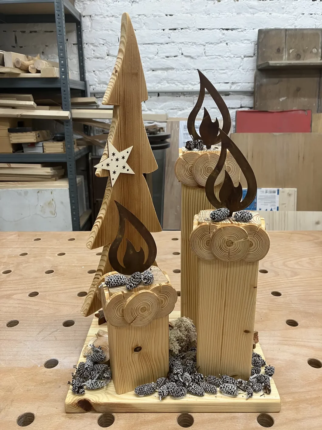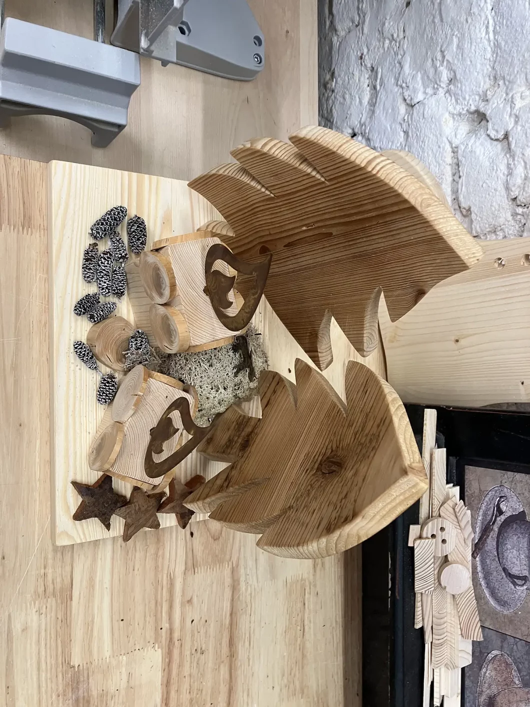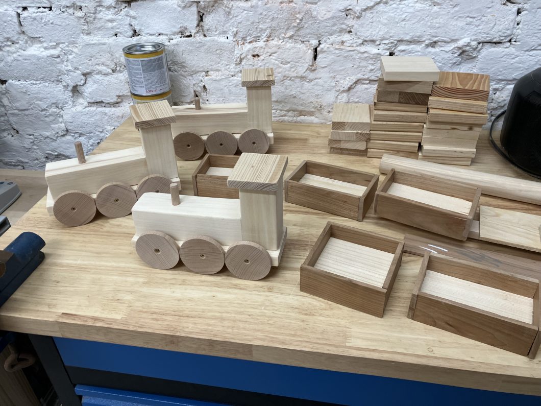 In der Vorweihnachtszeit habe ich mir vorgenommen, eine Reihe von Geschenken aus Holz zu machen. Vor allem Weihnachtsdeko hat es mir angetan. Weihnachtslandschaften, Weihnachtsstiefel oder Weihnachtslaternen standen am Plan. Ein schönes Projekt war der Weihnachtszug, der auch als Adventkranz fungieren kann (hat 4 Waggons). Diesen habe ich einige Male gebaut. Nicht zuletzt habe ich ihn auch als Weihnachtsdeko auf unserem heurigen Weihnachtsbaum verwendet.