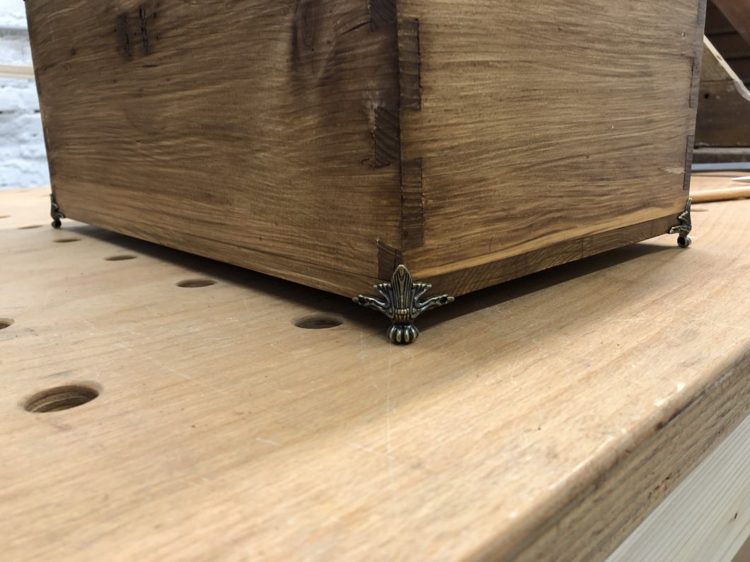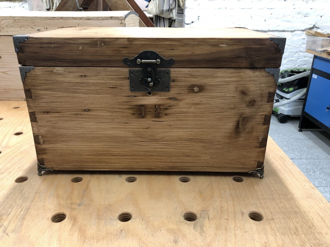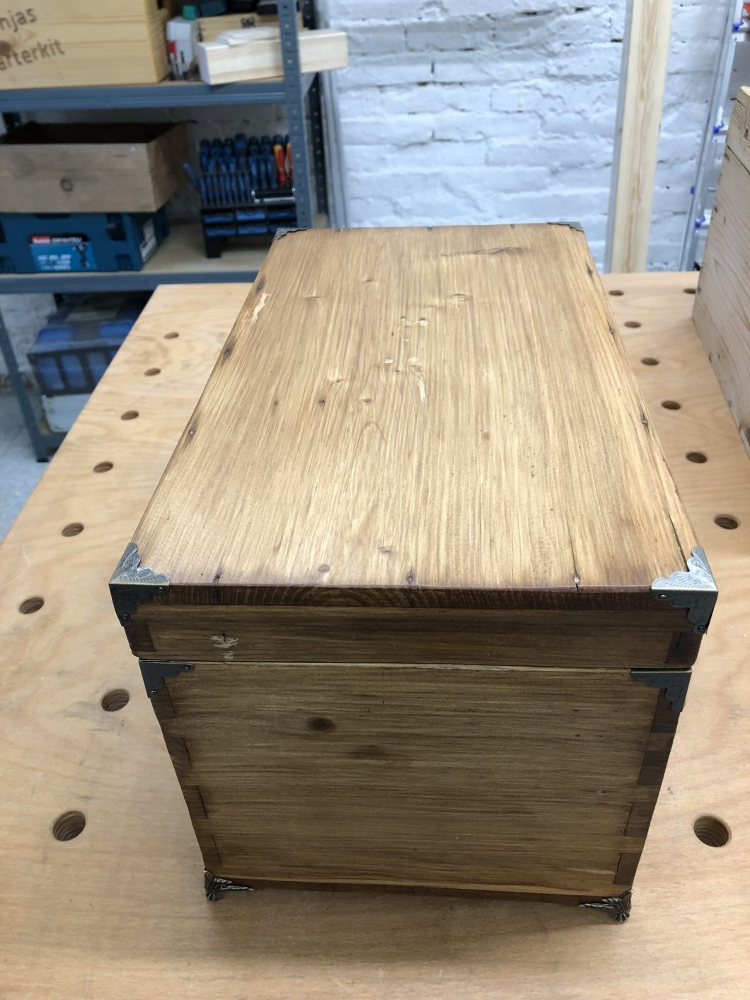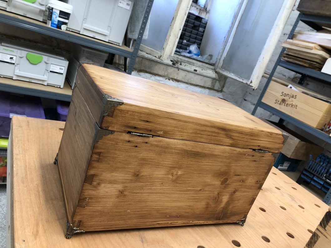 Diese Fichtenkiste habe ich in OÖ auf einem alten Bauernhof gefunden. Mir hat vor allem die Form, die unterschiedliche Maserung und Farbgebung des Holzes als auch das Potenzial, was in der Kiste steckte, gefallen. Mit coolen Beschlägen und alten Vintage Füßchen ein echter Hingucker! Heute befindet sie sich in der Kistensammlung eines Freundes von mir.
