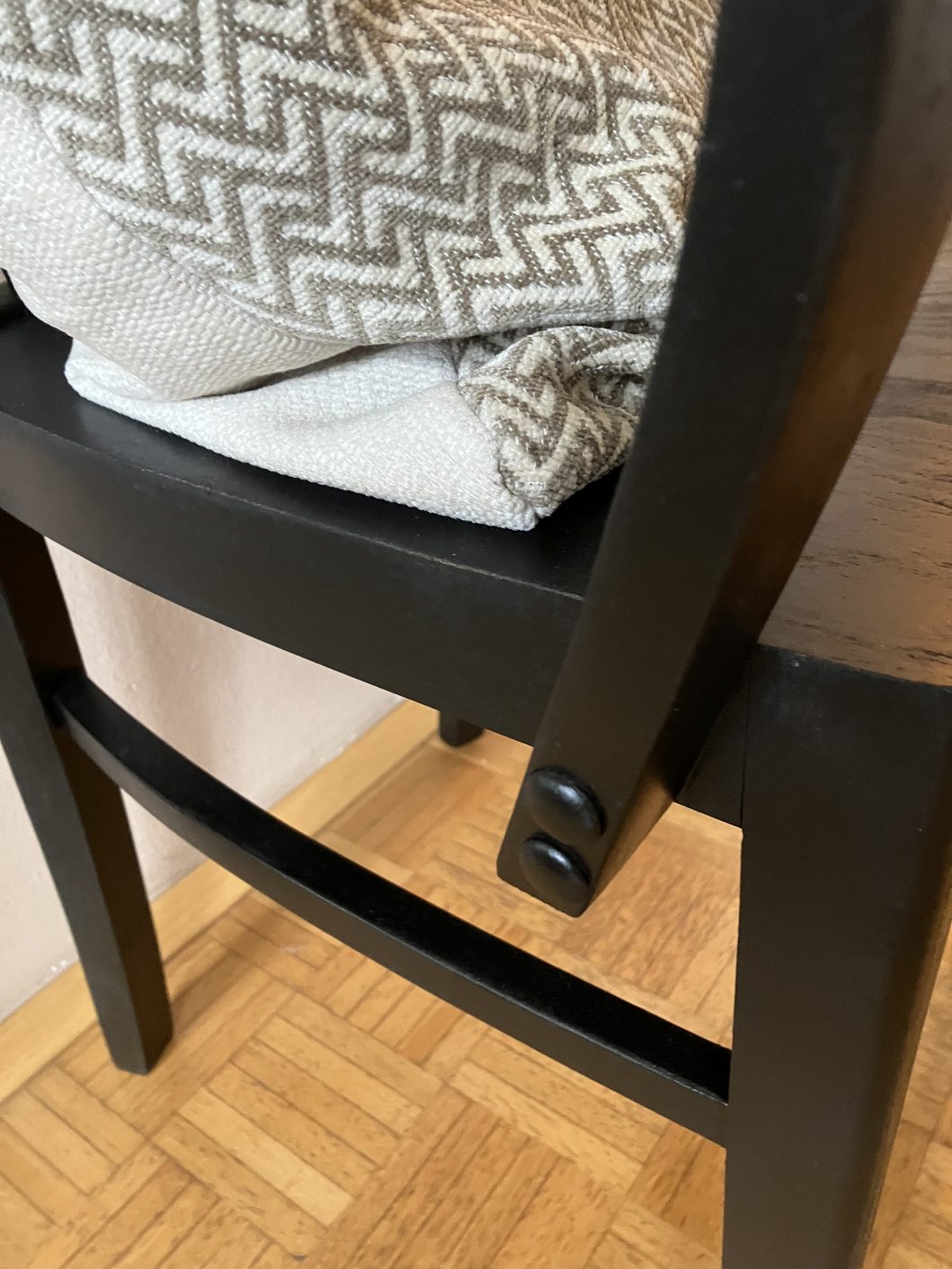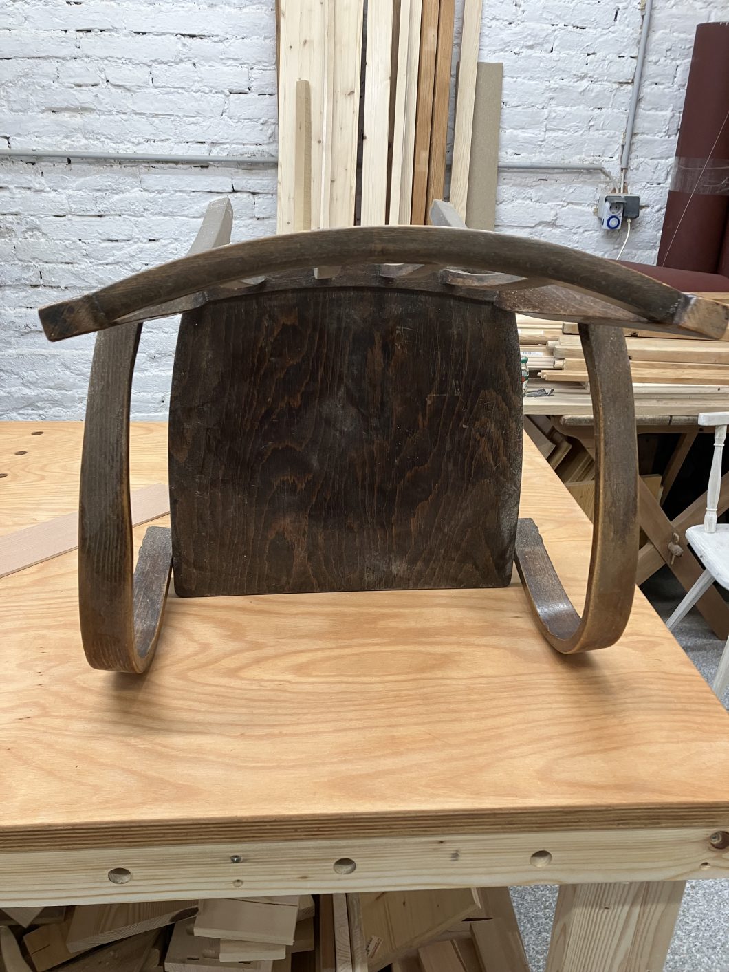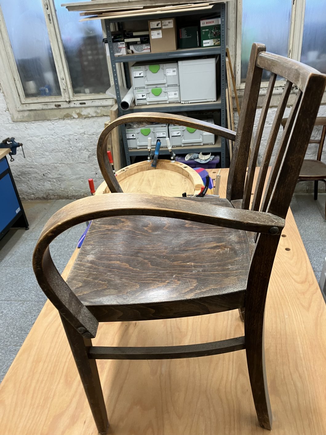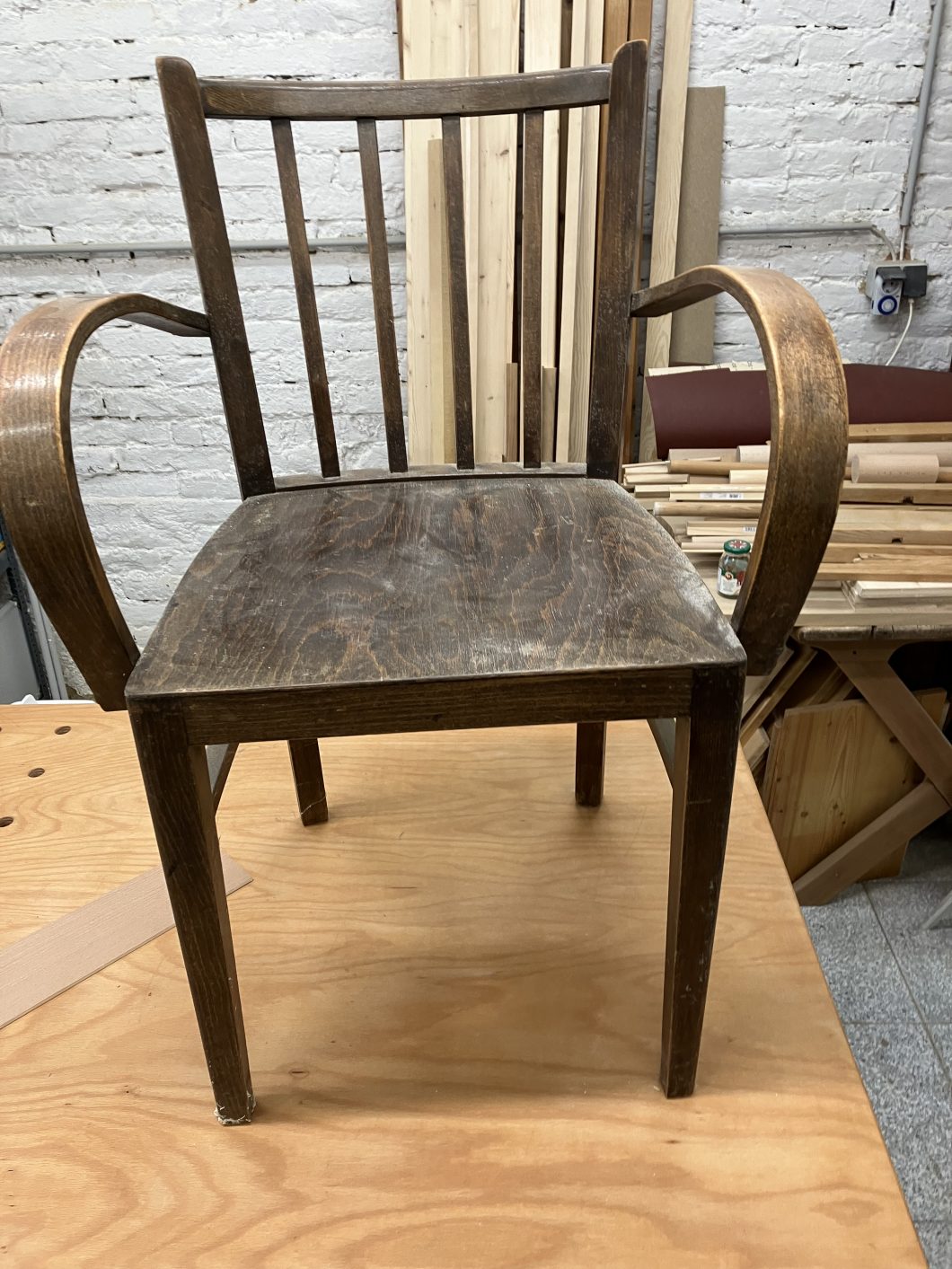 Dieser Sessel stammt aus einer Verlassenschaft. Teile davon waren leider in keinem guten Zustand, da er in der Vergangenheit sehr lieblos behandelt wurde. Durch viel Zeit, Mühe und Geduld wurden die Sprossen restauriert – jetzt erstrahlt er in neuem Glanz. Besonderes Detail sind die geschwungenen Lehnen, die in sehr gutem Zustand sind und die knopfmäßige Verbindung.