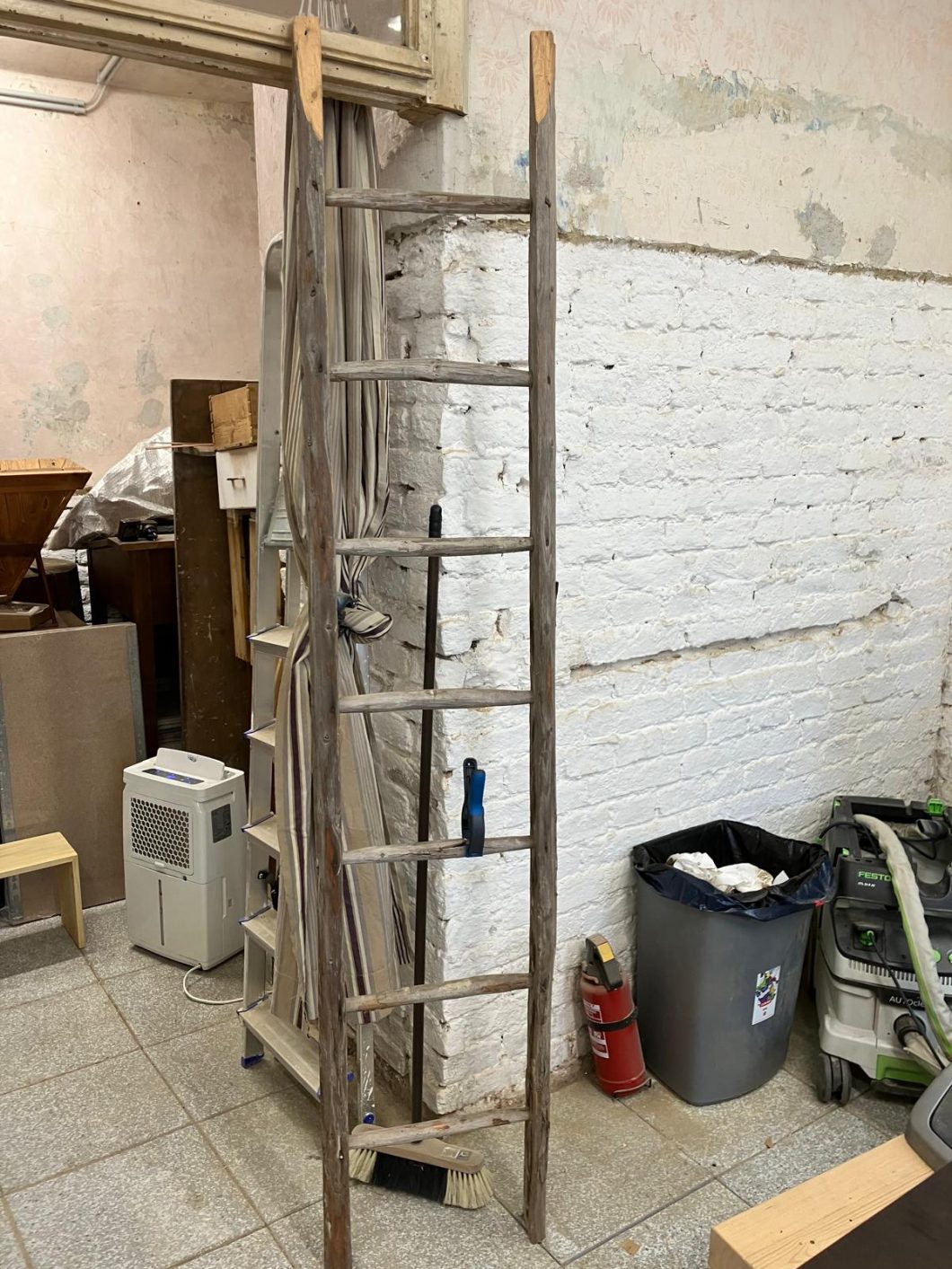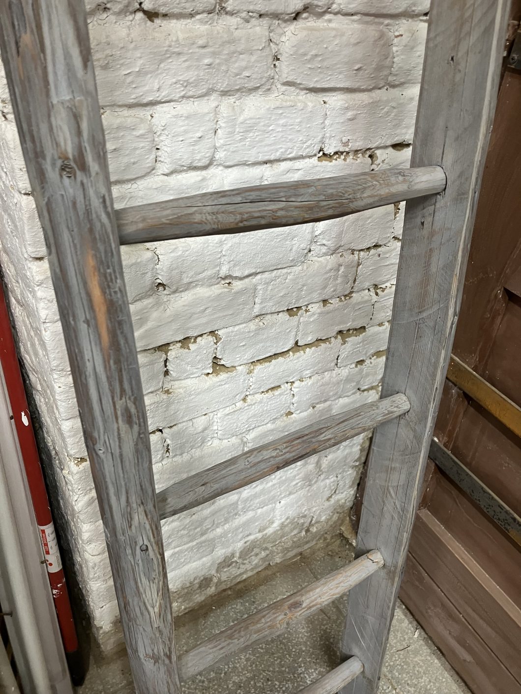 So sendete ich ihr ein Foto von meiner Leiter (sie war ursprünglich in einem Heustadl und ist rund 80 Jahre alt) und sie war von Beginn an verliebt. Ich habe die Leiter abgeschliffen, große Risse geschlossen und hellgrau gebeizt. Danach hat die Leiter ihr Finish mit antikem grauen Wachs erhalten.
