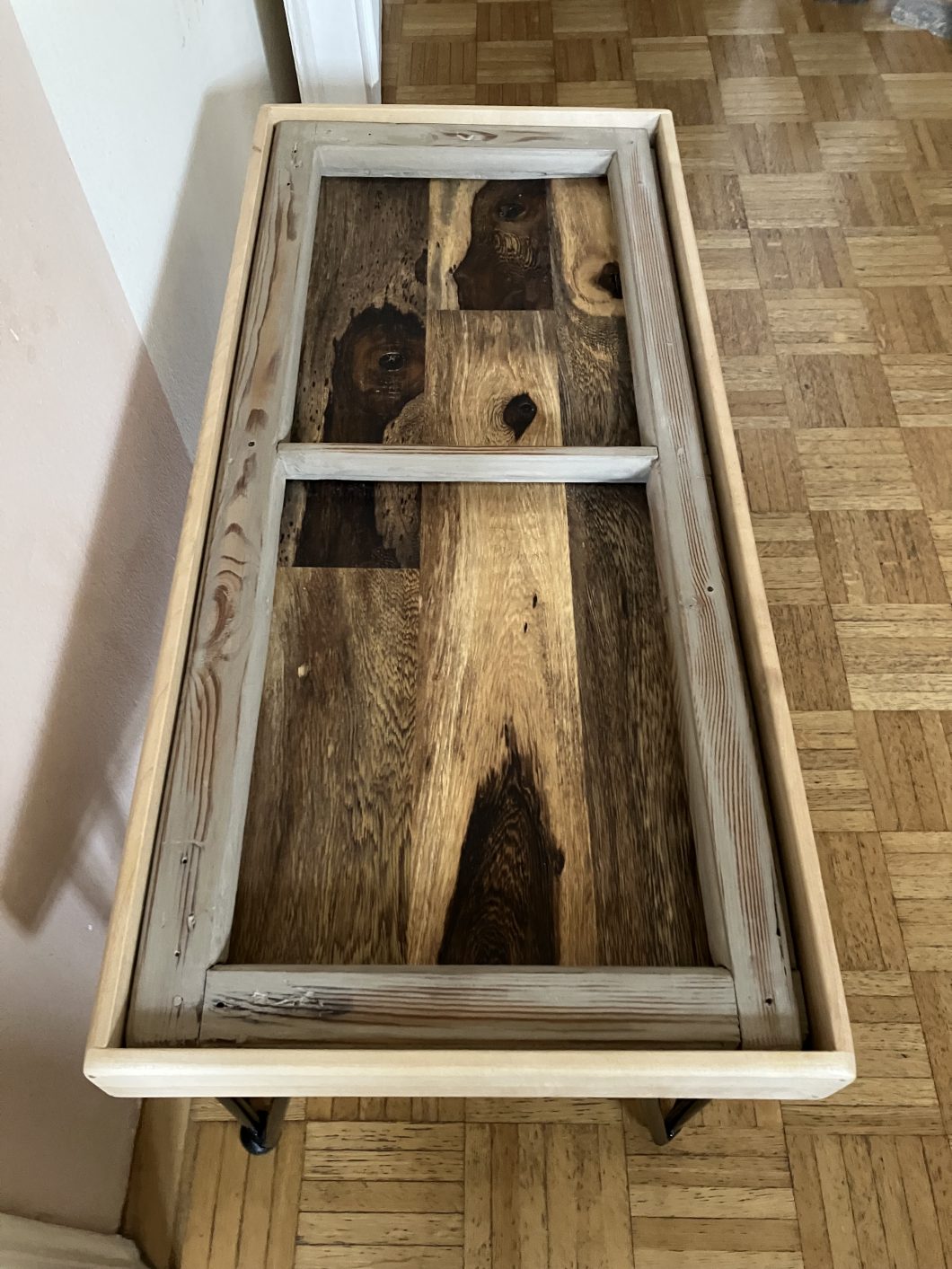 Vintage Couchtisch aus einem alten Fensterladen